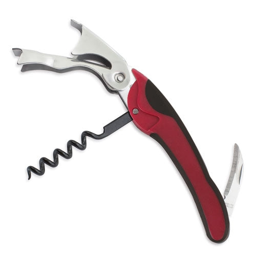 - Integra cuatro herramientas en una: sacacorchos, navaja cortacápsulas, descapsulador y abridor de latas