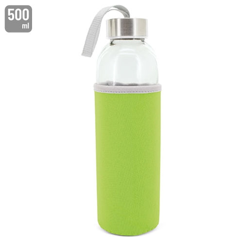 - Botella de agua en cristal con funda de neopreno antideslizante y desmontable