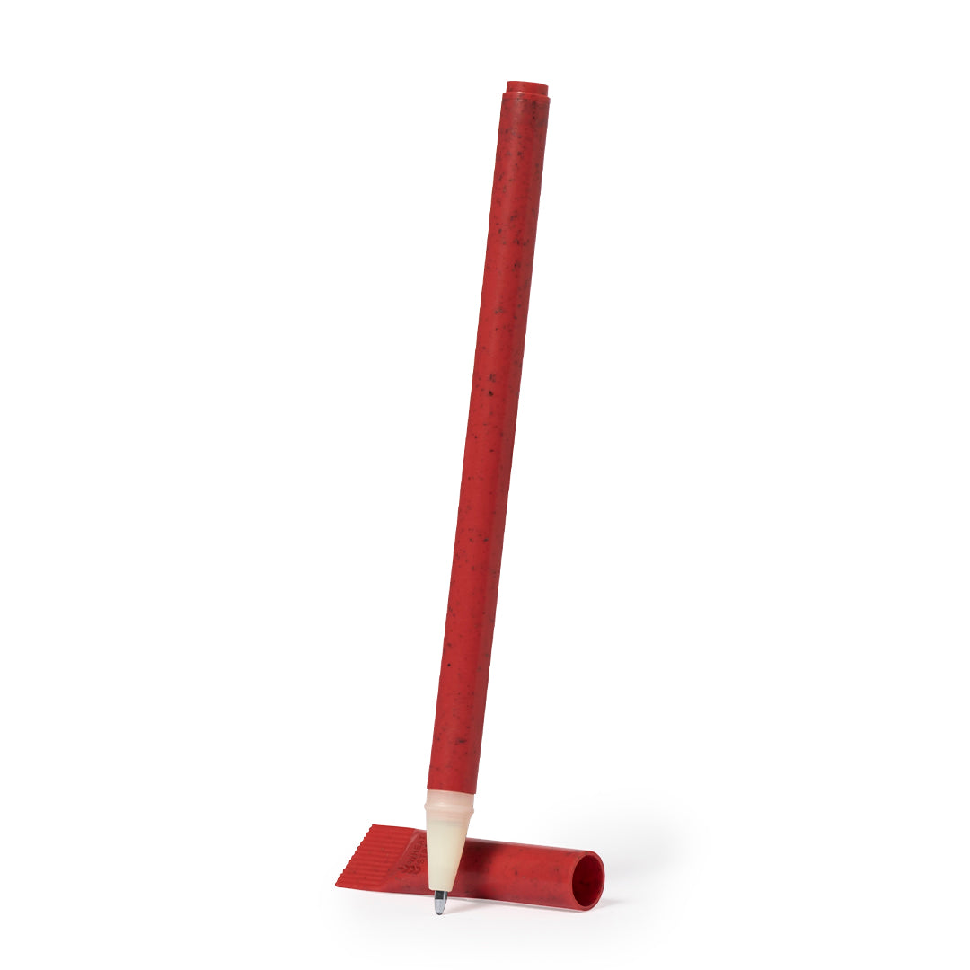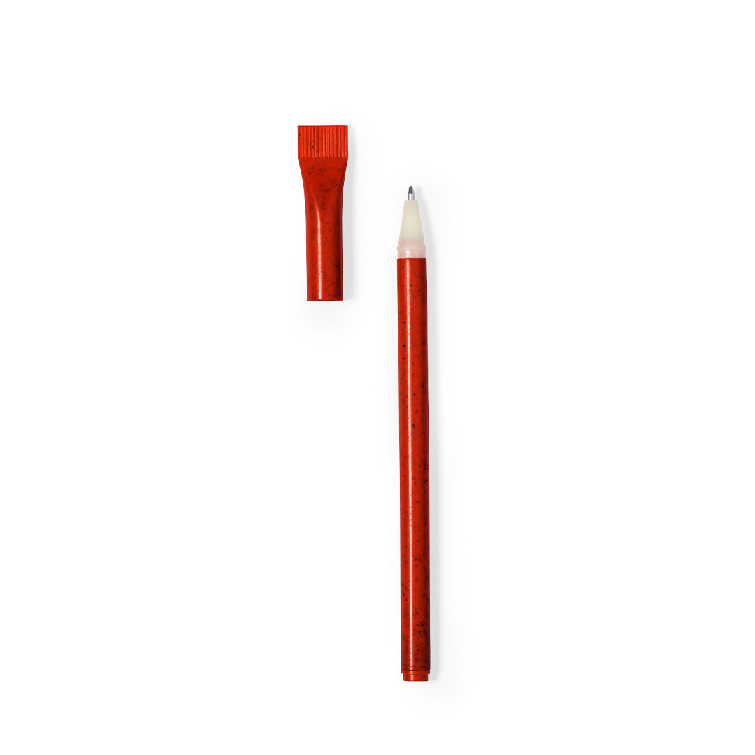 Bolígrafo con original capucha a juego y fabricado en caña de trigo y resistente ABS. Con tinta azul y disponible en variada gama de colores. Distintivo Wheat Straw en la capucha.La caña de trigo fomenta la utilización de materias primas naturales, reduciendo así las emisiones contaminantes.