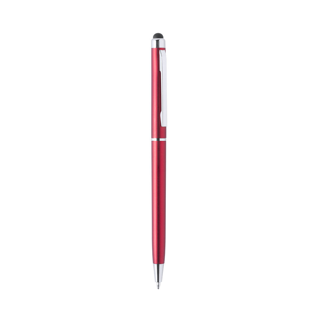Bolígrafo puntero de mecanismo giratorio con cuerpo en de suave acabado metalizado. Con clip cromado. En variada gama de llamativos colores. Tinta azul.