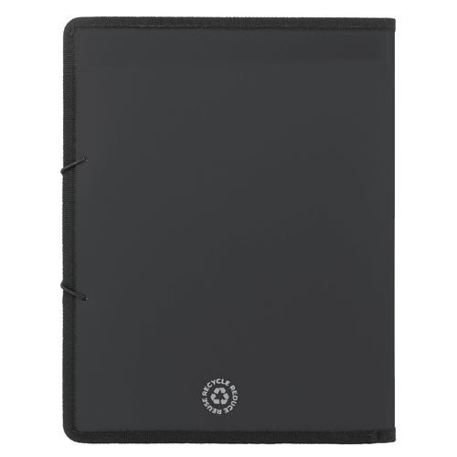 La Carpeta Congress con cierre de goma en color negro es el accesorio perfecto para profesionales y estudiantes que buscan organización, durabilidad y un compromiso con el medio ambiente. Este elegante diseño no solo mantiene tus notas y documentos seguros gracias a su práctico cierre de goma, sino que también incluye un bloc para que puedas apuntar todas tus ideas y pendientes sin necesidad de buscar papel adicional. Lo que realmente distingue a esta carpeta es su sello trasero “RECYCLE, REDUCE, REUSE”, una declaración de principios que refleja la importancia de cuidar de nuestro planeta. Este pequeño detalle marca la diferencia, demostrando que es posible ofrecer productos de calidad, útiles y respetuosos con el medio ambiente. Es la opción ideal para aquellos que no solo buscan eficiencia y estilo en su material de oficina, sino que también desean aportar su granito de arena en la conservación del medio ambiente. Con la Carpeta Congress con cierre de goma negro, llevas más que un accesorio; portas un mensaje de conciencia y responsabilidad. Es el complemento perfecto para tu día a día, combinando funcionalidad, estilo y un compromiso genuino con el planeta. Ideal para regalar o para darle un toque de seriedad y compromiso ecológico a tu propio espacio de trabajo.Incluye bloc, en la parte trasera incluye sello “RECYCLE, REDUCER, REUSE”.