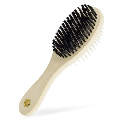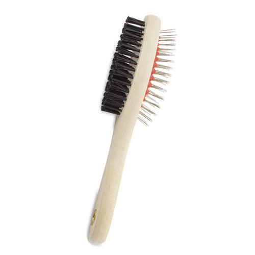 Si eres un amante de los animales y te preocupa el bienestar y la apariencia de tu mascota, el cepillo DUO TOBY es el complemento perfecto para la rutina de cuidado. Este innovador cepillo de doble función se ha diseñado específicamente para mantener el pelaje de tu mascota en las mejores condiciones. Por un lado, las cerdas suaves de fibra sintética son ideales para suavizar y añadir brillo al pelaje, removiendo suavemente el polvo y la suciedad sin irritar la piel de tu mascota. Por el otro, sus púas metálicas con terminaciones redondeadas garantizan un peinado eficaz a través de las capas más profundas del pelaje, facilitando la eliminación de nudos sin causar molestias. Perfecto para mascotas con pelaje largo, rizado o lanudo, este cepillo no solo desenreda y alisa, sino que también contribuye a una estructura capilar saludable, gracias a su diseño pensado para proteger la piel mientras se peina. La calidad se hace sentir también en su mango de madera ergonómicamente diseñado, que incluye un orificio tachonado para colgarlo fácilmente y mantenerlo siempre a mano. El uso regular del cepillo DUO TOBY te permitirá mantener el pelaje de tu mascota hermoso, saludable y libre de enredos.El cepillo DUO TOBY es un cepillo para mascotas de doble función, pensado y diseñado para obtener el mejor cuidado del pelo de su mascota.La cara de cerdas suaves de fibra sintéticas sirve para alisar y dar brillo a la capa superior del manto, eliminando restos de polvo o suciedad superficiales.Su otra cara presenta púas metálicas con terminación redondeada para proteger la piel mientras se accede a capas interiores ayudando a desenredar y estructurar el pelo.Indicado para mascotas de pelaje largo, rizado y lanudo con un manto interior grueso. Apto para utilizar con regularidad.Su estructura está realizada en madera, y presenta un orificio tachonado para colgar.