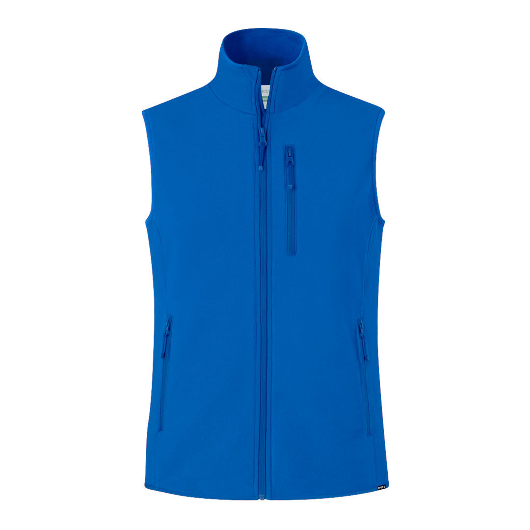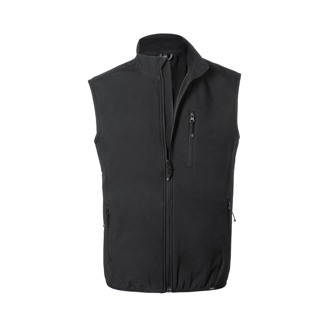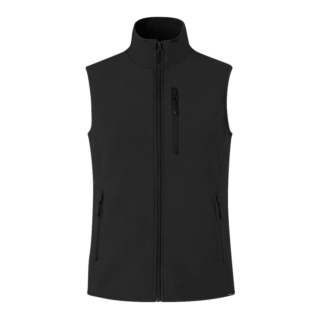 Chaleco impermeable y transpirable en combinación de materiales RPET, elaborados a partir de plástico reciclado, para así fomentar la reutilización de residuos plásticos y contribuir a la sostenibilidad del planeta: exterior en soft shell y elastano de 300g/m2 con interior en 100% poliéster microfleece. Con distintivo eco en dobladillo inferior de la prenda. Resistente al viento y al agua con cierre principal y bolsillos frontal en pecho y laterales de cremallera invisible y tiradores a juego. Disponible en variada gama de colores y en tallas S, M, L, XL, XXL.. Resistente al Viento y al Agua