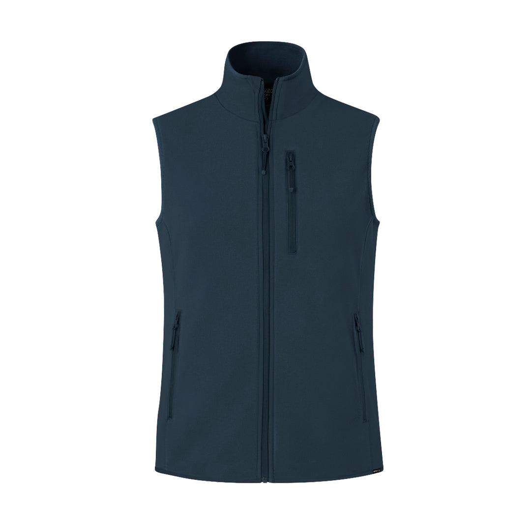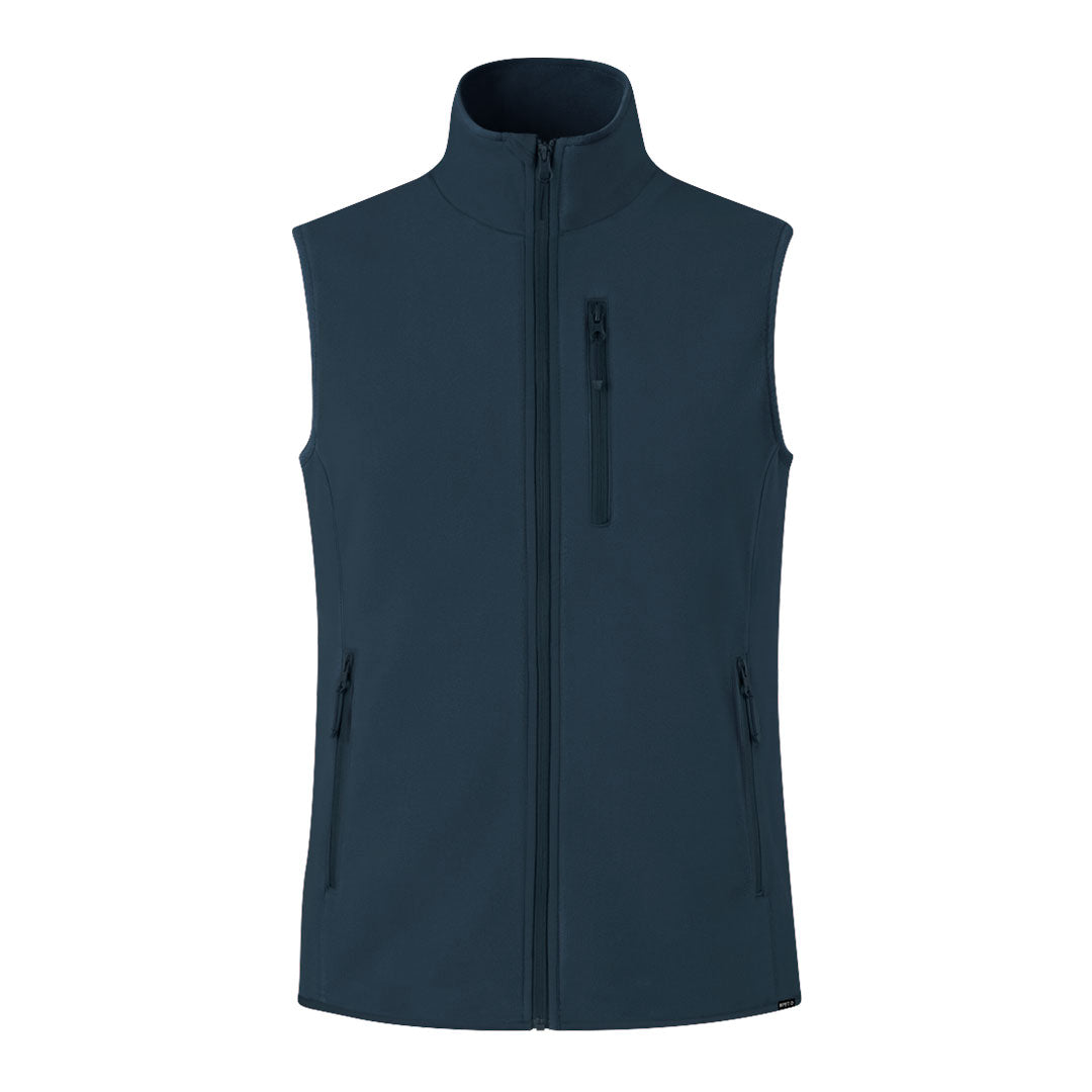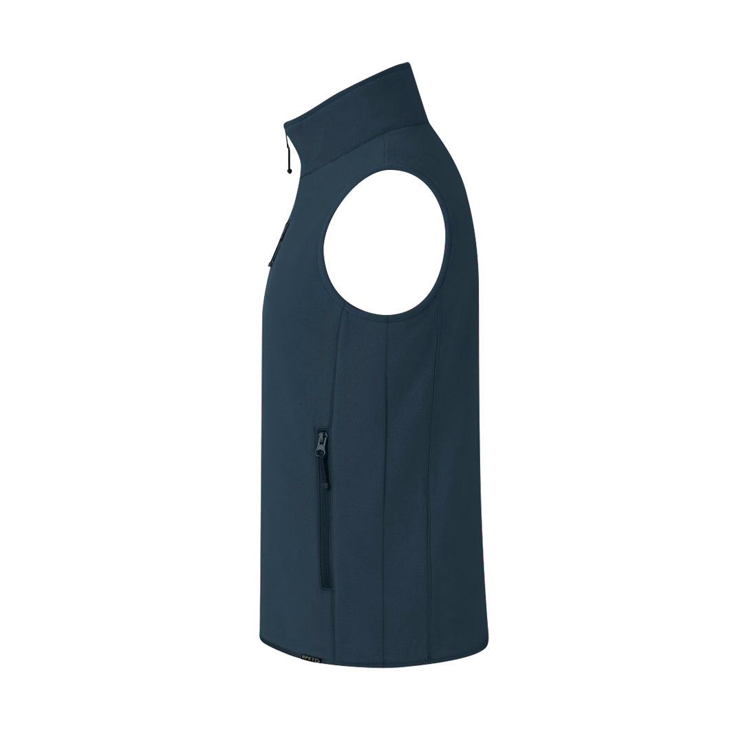 Chaleco impermeable y transpirable en combinación de materiales RPET, elaborados a partir de plástico reciclado, para así fomentar la reutilización de residuos plásticos y contribuir a la sostenibilidad del planeta: exterior en soft shell y elastano de 300g/m2 con interior en 100% poliéster microfleece. Con distintivo eco en dobladillo inferior de la prenda. Resistente al viento y al agua con cierre principal y bolsillos frontal en pecho y laterales de cremallera invisible y tiradores a juego. Disponible en variada gama de colores y en tallas S, M, L, XL, XXL.. Resistente al Viento y al Agua