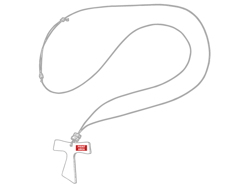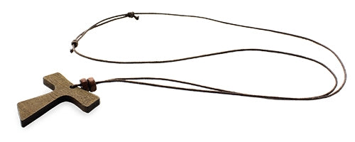 Colgante realizado en madera con cordón de polipiel encerado y nudo corredizo ajustable.