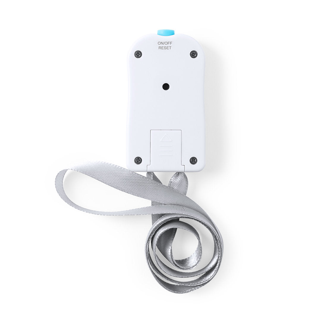 Contador de aforo digital fabricado en resistente material ABS de acabado brillo, con práctica cinta de poliéster y amplios pulsadores para añadir o restar aforo. Pantalla digital con contador de 4 dígitos y botón de reinicio en parte superior. Amplia superficie para logotipo, especialmente diseñado para marcaje en tampografía. Presentado en atractiva caja individual de diseño. Alimentación a pilas, de botón incluida.. Pila Botón Incluida