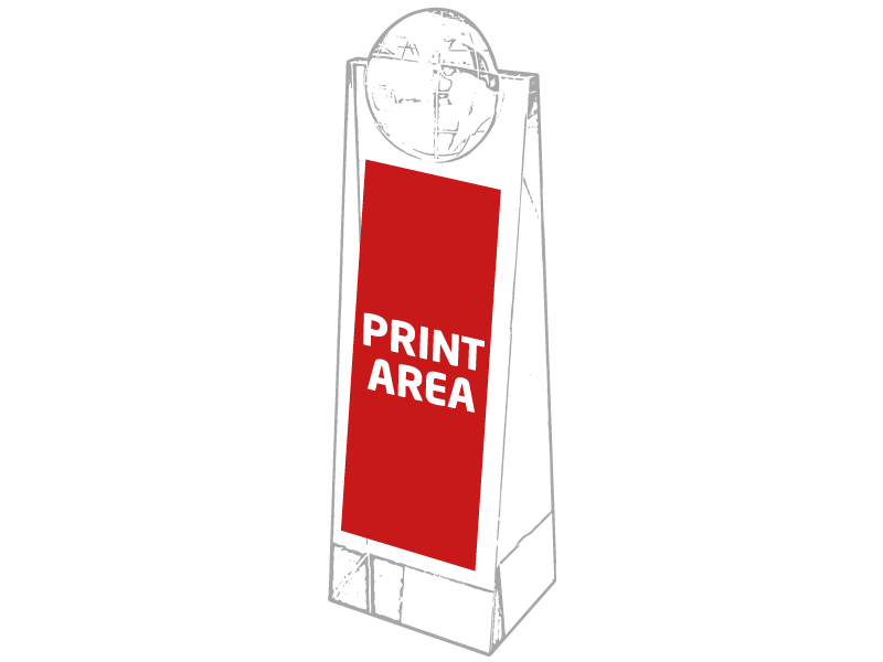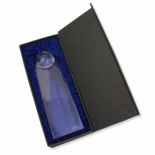 Cristal tallado en forma de prisma con labola del mundo en la parte superior.