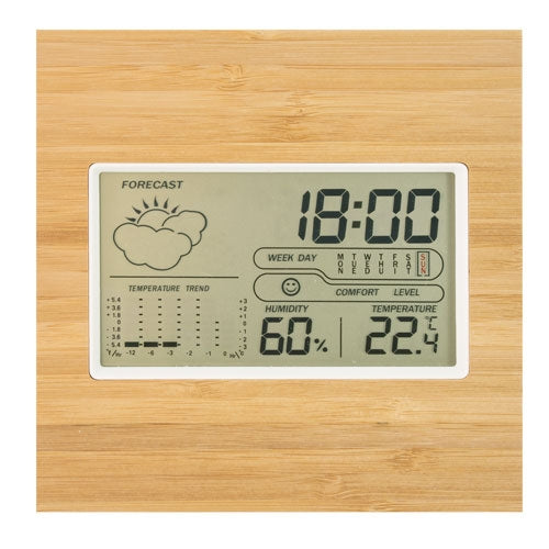 La Estación Meteorológica de Bambú Java redefine la manera de mantener un seguimiento preciso del tiempo y el ambiente en tus espacios preferidos. Fabricada con bambú natural, ofrece una estética elegante y sostenible, convirtiéndose en un complemento perfecto tanto para interiores modernos como para lugares de trabajo. ¿Buscas optimizar tu confort en oficinas, viviendas o incluso en invernaderos? Esta estación meteorológica está diseñada para ti. Equipada con un rango de temperatura de 0 a 50 ºC y un rango de humedad del 20% al 90%, asegura mediciones precisas para mantenerte siempre informado. Además, no sólo se limita a funciones básicas; cuenta también con registro de temperatura y humedad máxima y mínima, reloj en formato de 12/24 horas, calendario, una indicación del nivel de confort e icono de clima, adaptándose perfectamente a las necesidades de cualquier usuario. Con opciones de alarma y snooze para aquellos que necesitan ese “cinco minutos más”, es la herramienta perfecta para empezar el día de la mejor manera. Ya sea que prefieras apoyarla en una mesa o colgarla en la pared, su diseño multifuncional está pensado para adaptarse a cualquier espacio, agregando un toque de naturaleza y tecnología. La Estación Meteorológica de Bambú Java se presenta en una caja individual con instrucciones de uso, ideal para aquellos que aprecian la precisión y el diseño sostenible. (Nota: requiere 2 pilas AAA, no incluidas).Realizado en bambú natural, ideal para oficinas, salas de ordenadores, viviendas, invernaderos etc..Con soporte mesa y para colgar en la pared.Características:Rango de temperatura:0-50ºC (32-122ºF)Rango de humedad: 20%-90%Registro de temperatura y humedad mínima y máximaHora en formato de 12/24 horasCalendarioNivel de ConfortIcono climaAlarma, Snooze - Repetición de alarmaPresentado en caja individual con instrucciones de uso(2 pilas AAA No incluidas)