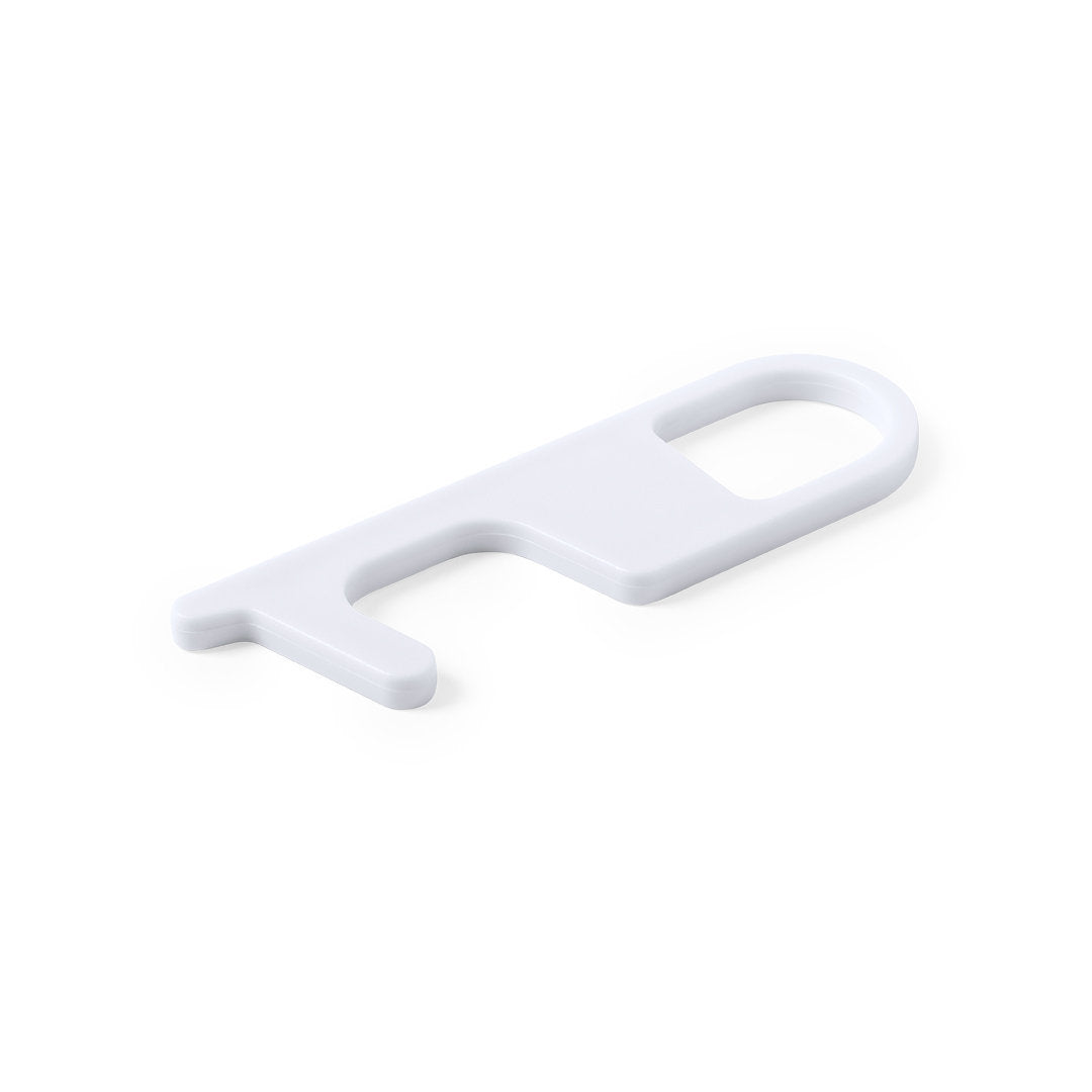 Llavero higiénico antibacteriano y anti-contacto, fabricado en resistente ABS de acabado sólido. Especialmente diseñado para evitar tocar con las manos superficies de uso común (picaportes de puertas, interruptores, grifos de uso público, cajeros automáticos...). Con cómodo troquel para el dedo y presentado en bolsita individual. Recomendado para marcaje en tampografía.Los productos con tratamientos antibacterianos son capaces de reducir drásticamente las cargas bacterianas presentes en las superficies de los materiales, gracias a la incorporación de agentes microbianos permanentes estáticos, con alta efectividad para inhibir y prevenir la contaminación bacteriana.Artículo de acuerdo al estándar ISO 22196, que determina la actividad antibacteriana en materiales plásticos y superficies no porosas, lo que permite conocer la efectividad de inhibición microbiana que tienen los aditivos sobre los objetos tratados mediante una evaluación cuantitativa.