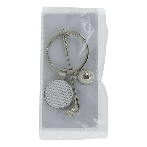 - Elegante llavero metálico con diseño detallado de elementos del golf