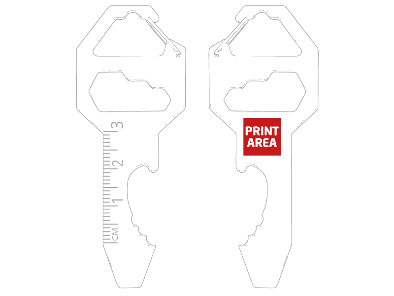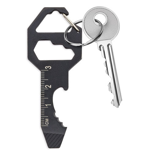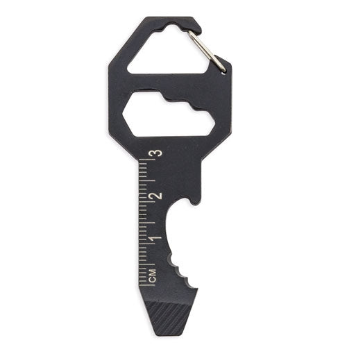 - Llavero multifuncional con 6 herramientas: mosquetón, pelacables, abridor, regla, destornillador plano y llave hexagonal