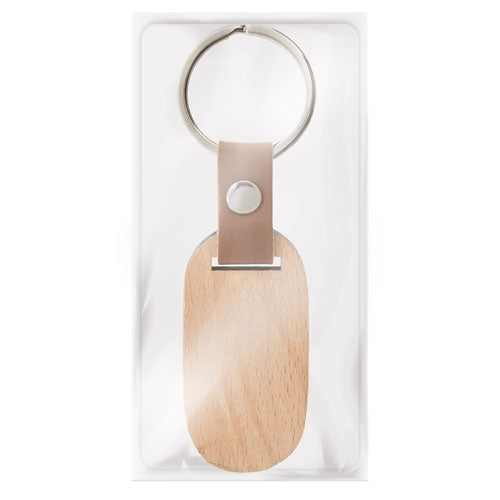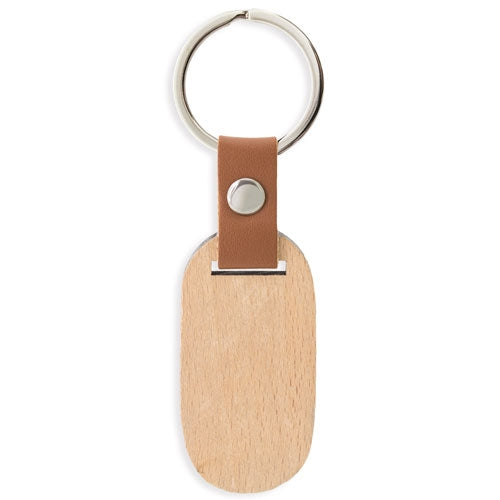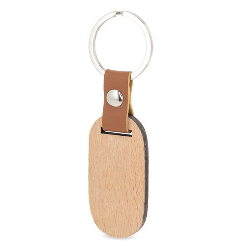- Llavero elegante realizado en madera con detalle en PU y acabados metalizados