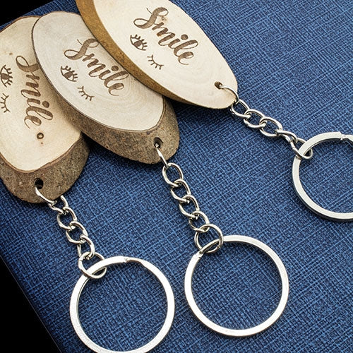 - Llavero realizado en madera natural, que deja ver la corteza de la propia rama