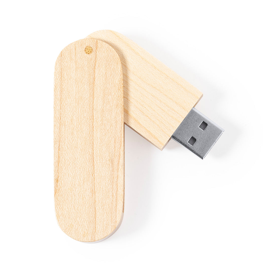 Memoria USB de línea nature plegable, de 16GB de capacidad. Fabricada en madera, para así fomentar la utilización de materiales naturales. Presentada en atractiva caja de diseño eco.