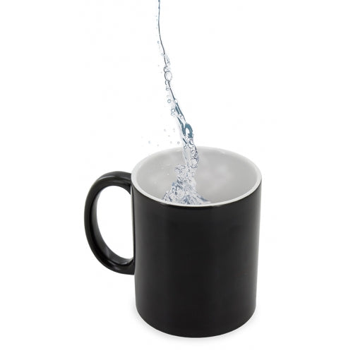 - • Taza mágica negra que revela un diseño único al verter líquido caliente