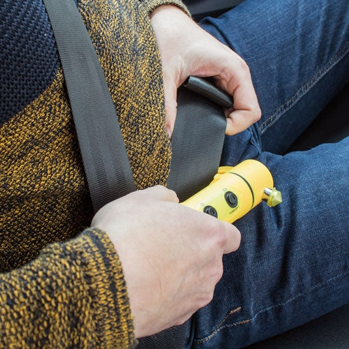 - Equipado con cortador de cinturón de seguridad y rompedor de lunas