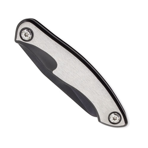 - Navaja de gran calidad realizada en acero inoxidable con terminaciones combinadas en color negro