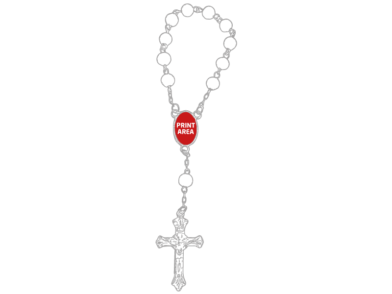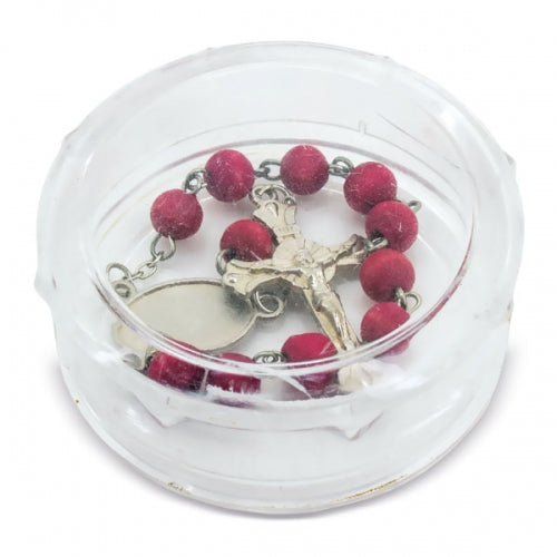 El clásico rosario de mano, con cuentas de madera y cruz con relieve.
