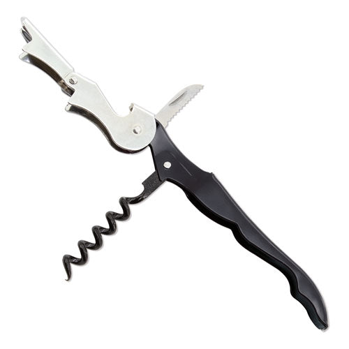 El sacacorchos negro de nueva generación está diseñado para todos los amantes del vino que buscan la perfección en cada detalle. Este elegante sacacorchos, con su innovadora doble palanca, garantiza una extracción del tapón suave y sin esfuerzo, evitando las molestas roturas o daños. La experiencia de abrir una botella de vino se convierte así en un gesto simple y elegante. Además de su funcionalidad destacada, este accesorio viene equipado con un práctico abrebotellas que complementa a la perfección su diseño. Su mango ergonómico, acabado en un refinado color negro mate, no solo aporta un toque de sofisticación a tu colección de accesorios para vino, sino que también asegura un agarre cómodo y seguro durante el uso. Ya sea para una cena especial o como un regalo distinguido, este sacacorchos es una elección acertada. Presentado en una bolsa individual y alojado en una caja blanca de presentación, se convierte en el regalo ideal para cualquier entusiasta del vino, o un complemento necesario en tu propio hogar. Experimenta la combinación perfecta de funcionalidad y estilo con el sacacorchos negro.Nueva generación de sacacorchos con doble palanca, para una suave y fácil extracción del tapón.Incluye un práctico abrebotellas con mango ergonómico en color negro mate.Cada pieza en bolsa individual y caja blanca de presentación.