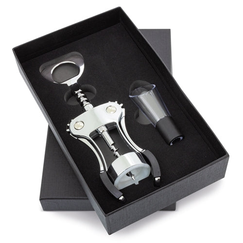 - Completo estuche para regalar que incluye un abridor y un vertedor de vino