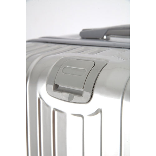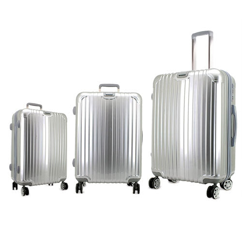 - Lujoso set de 3 Trolley de 20”, 40” y 60” en acabado metalizado con diseño acanalado