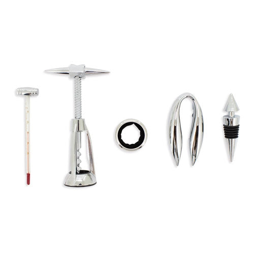 - Incluye termómetro, sacacorchos, anillo antigoteo, tapón y descapsulador