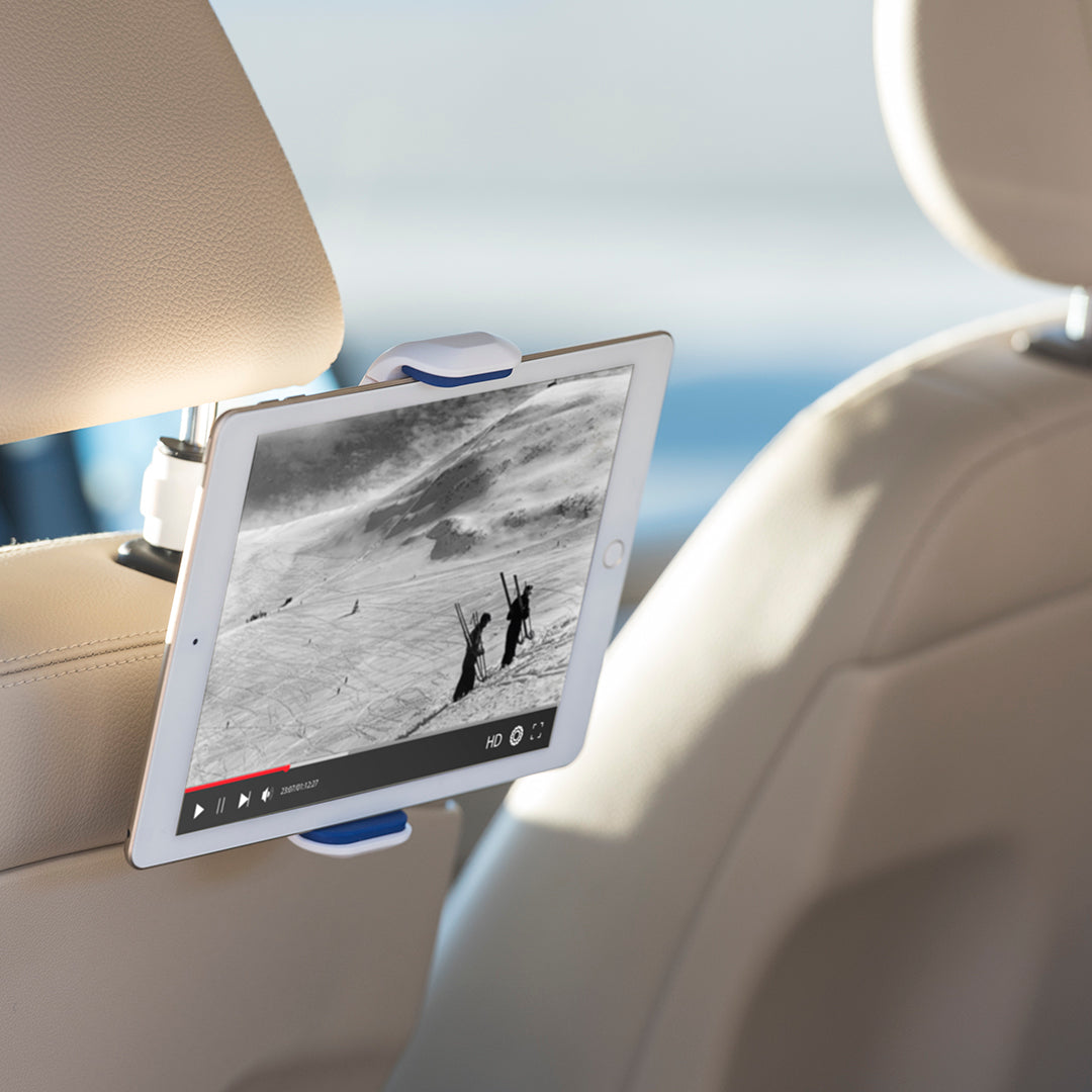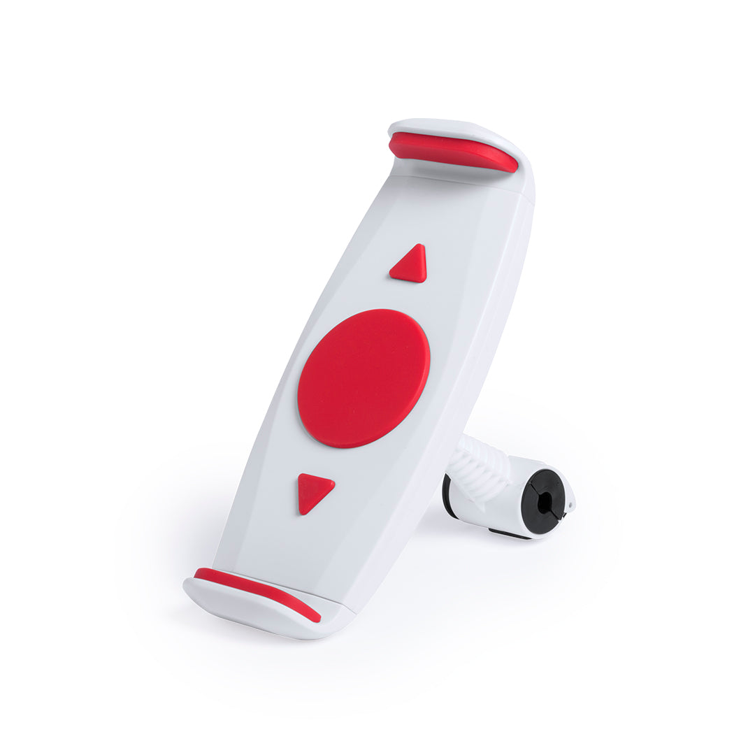 Original soporte para dispositivos móviles de hasta 10 pulgadas para acople a la barra del cabecero del coche. En variada gama de colores, giratorio 360º y con gomas anti deslizantes de alta sujeción.. Ajustable