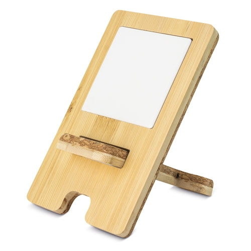 Para los amantes de lo práctico y lo sustentable, llega el Soporte para teléfono realizado en materiales naturales, una propuesta innovadora que combina funcionalidad y respeto por el medio ambiente. Este soporte único está confeccionado a partir de materiales como bambú y corcho, conocidos por su durabilidad y bajo impacto ambiental. Además, incluye un distintivo cuadrado de cerámica especial para sublimar, lo que te permite personalizarlo con el diseño o mensaje que prefieras, ya sea como un toque personal en tu escritorio o como un regalo memorable. No solo te ofrece la ventaja de mantener tu dispositivo móvil en la posición ideal para ver vídeos, realizar videollamadas o navegar por la web sin usar las manos, sino que también contribuye a un entorno de trabajo más organizado y estético. A pesar de su robustez, este soporte se entrega desmontado, permitiéndote disfrutar de un momento de relajación mientras lo ensamblas, añadiendo así un toque personal desde el primer momento. El Soporte para teléfono realizado en materiales naturales no es solo un accesorio, sino una declaración de estilo y conciencia ecológica. Soporte teléfono realizado en materiales naturales. Incluye un cuadrado de cerámica especial para sublimar se sirve desmontado
