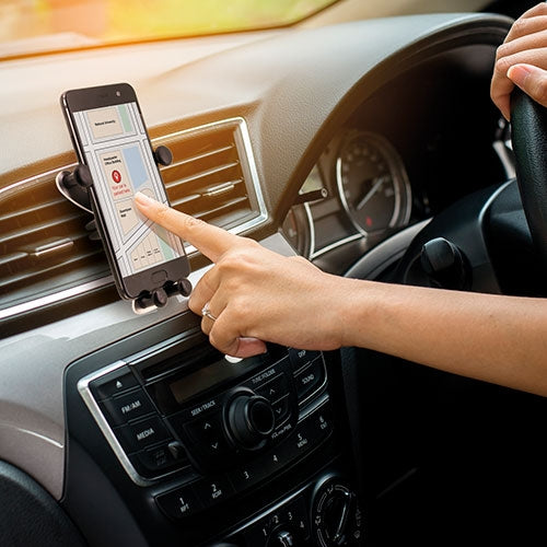 - • Sistema de anclaje ajustable que utiliza la gravedad para asegurar el teléfono