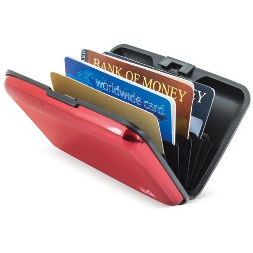 - Elegante y seguro tarjetero acordeón RFID en color rojo