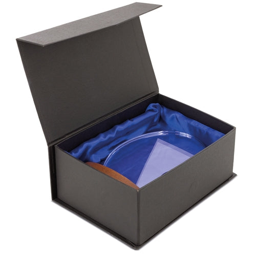 Cada trofeo presentado en un estuche negro y funda de cartón blanca. Medida base 13x4,5x3 cm
